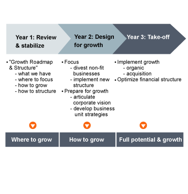 Bain used a three-year framework to guide the work and frame the clients' thinking around core issues.