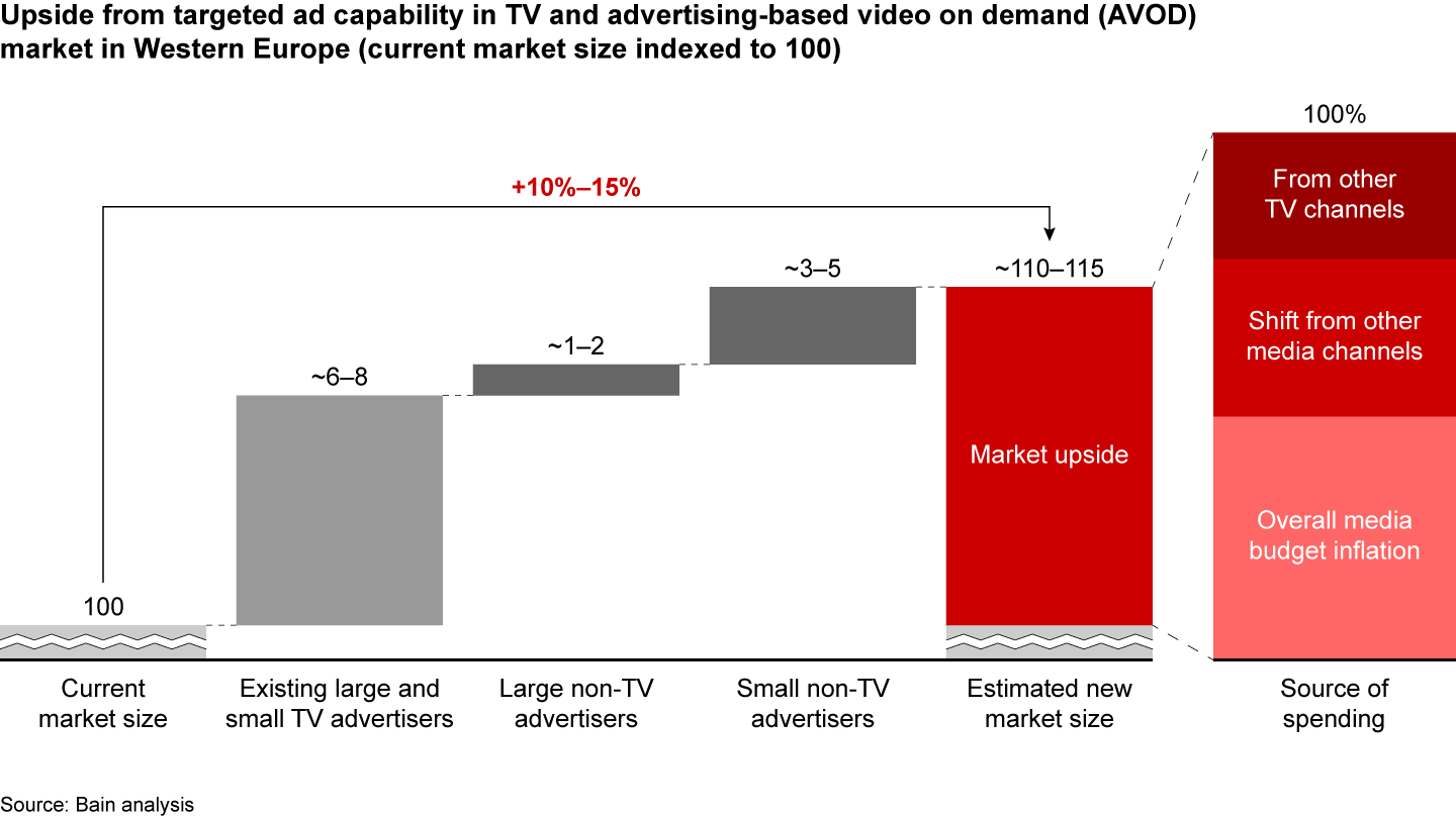 We expect existing TV advertisers to account for the largest share of upside potential. They are more likely to be enticed by offerings of better targeting and outcome-based measurement. They also place a high value on premium content and brand safety, areas where traditional broadcasters can excel.