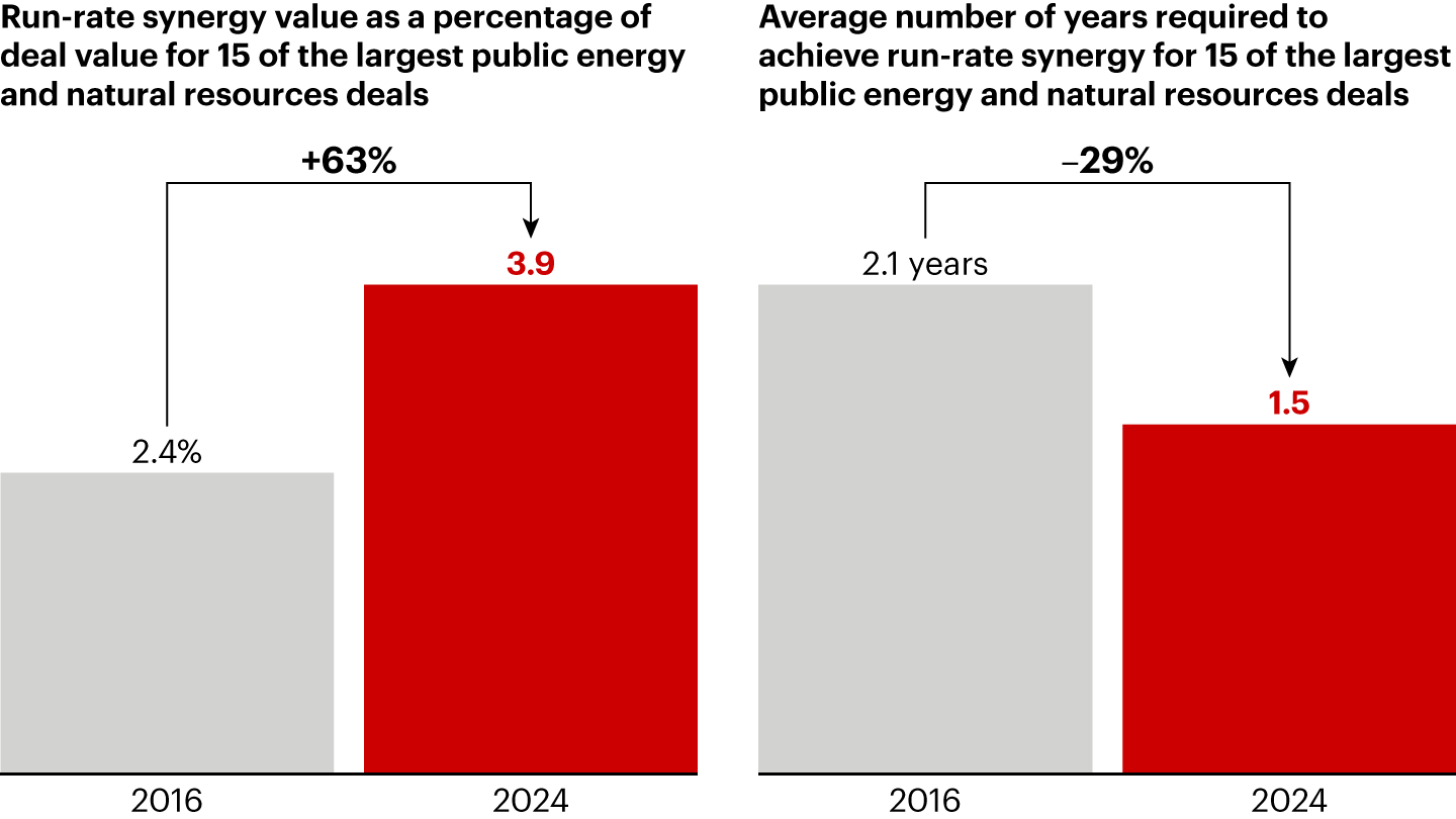 Beyond higher diligence standards, the best companies now devote more energy to translating the deal thesis into an integration thesis. Knowing the what is no longer enough; companies in energy and natural resources now need a clear view of the how for delivering value.