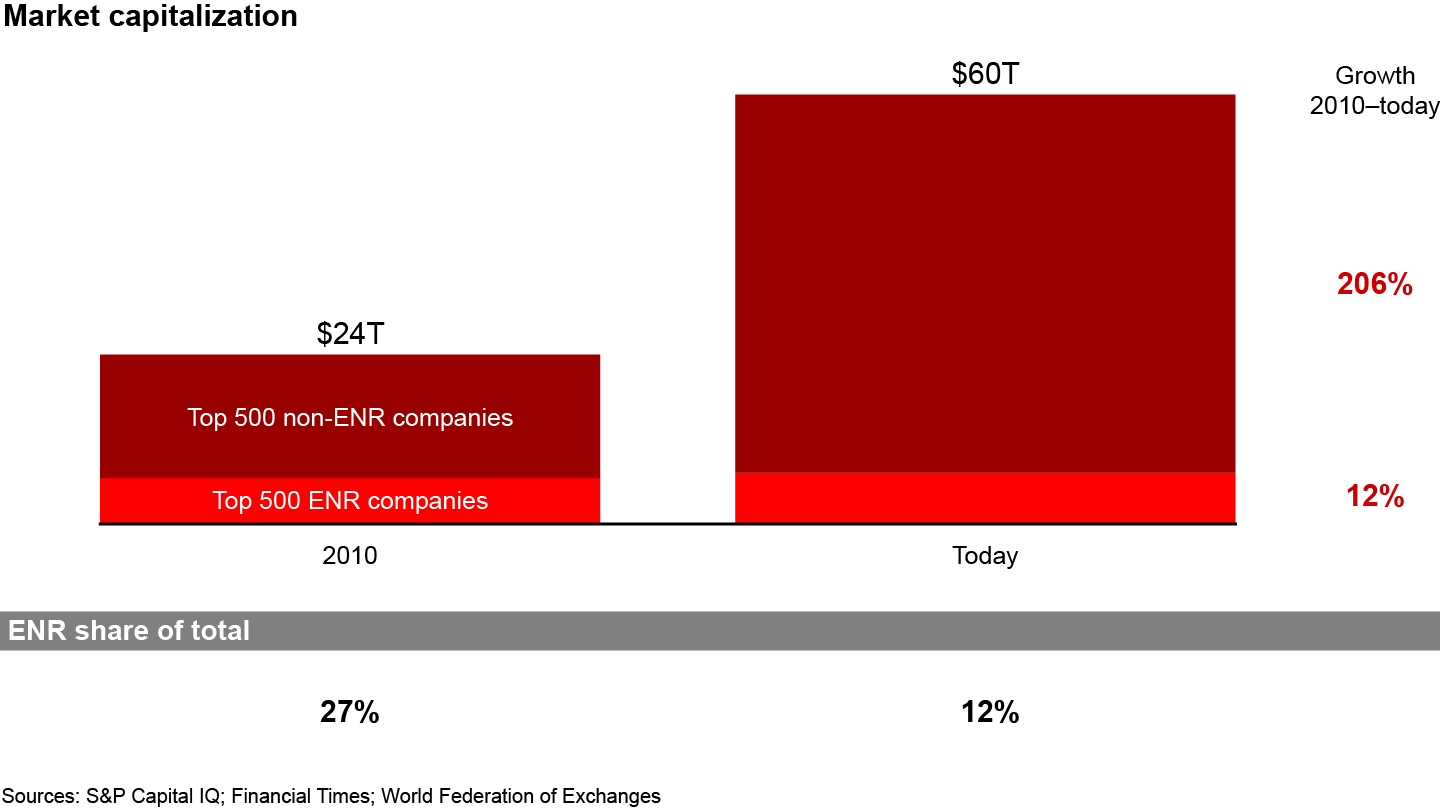 ENR firms face two related challenges. One is that greater scrutiny from the public over sustainability and greenhouse gas (GHG) emissions is making it harder to obtain capital for expansion. The second is that capital is flowing to their insurgent competitors, which are disrupting these industries and beginning to take market share.