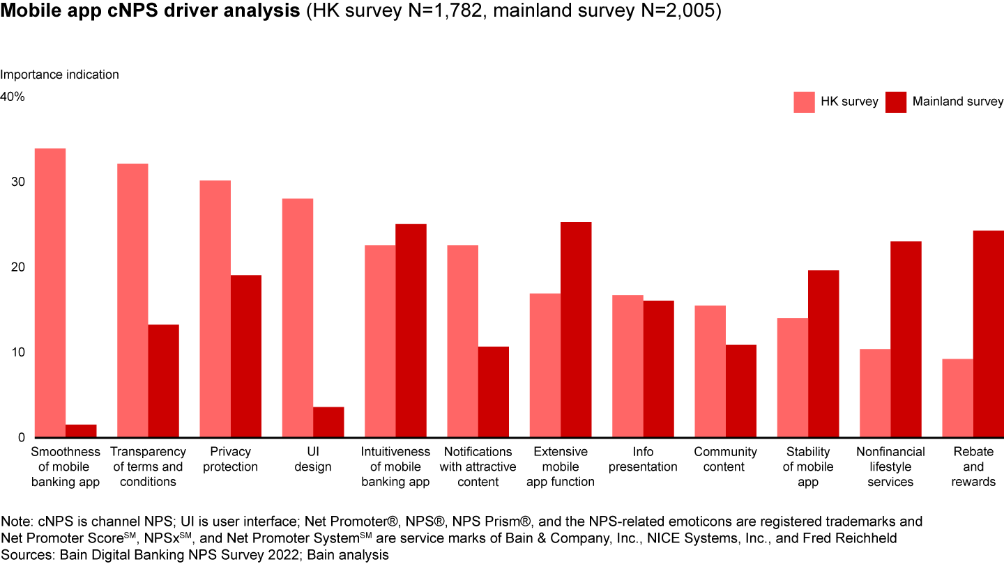 - Mobile banking penetration reached 80% in Hong Kong. Mobile is the most important channel for driving Net Promoter ScoreSM; however, branches have a higher likelihood to delight customers.