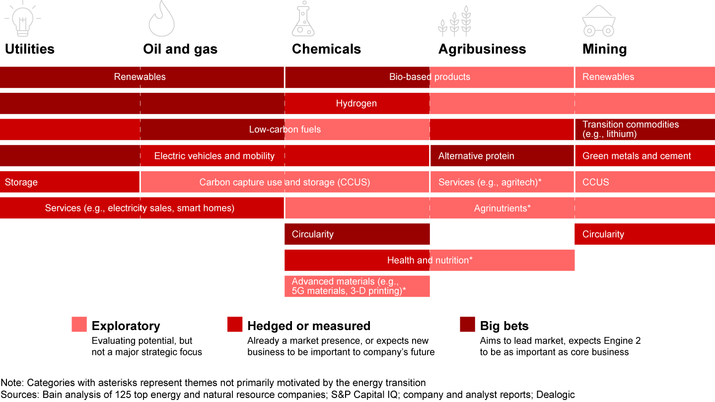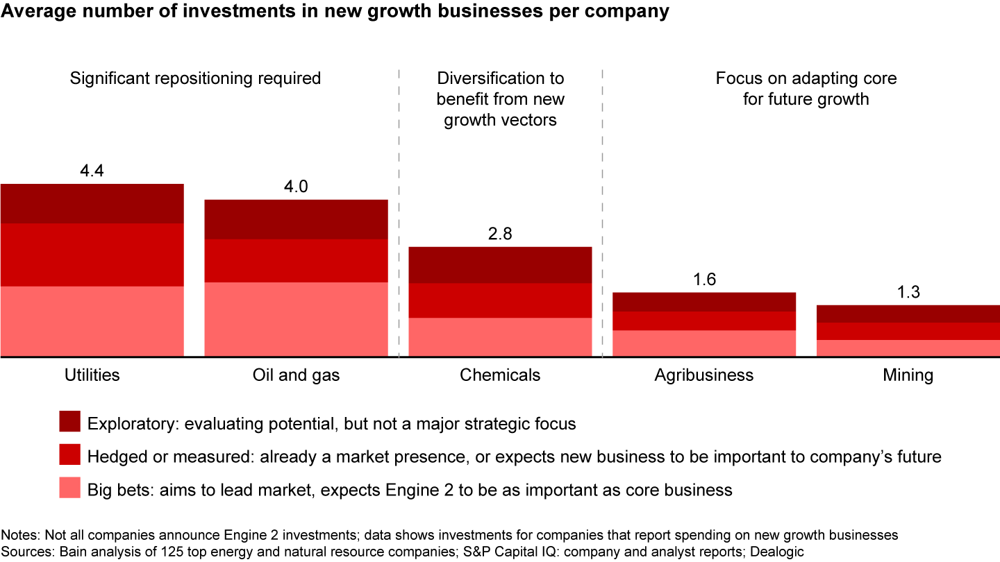 Our analysis of these leading energy and natural resource companies reveals three types of investments in Engine 2: