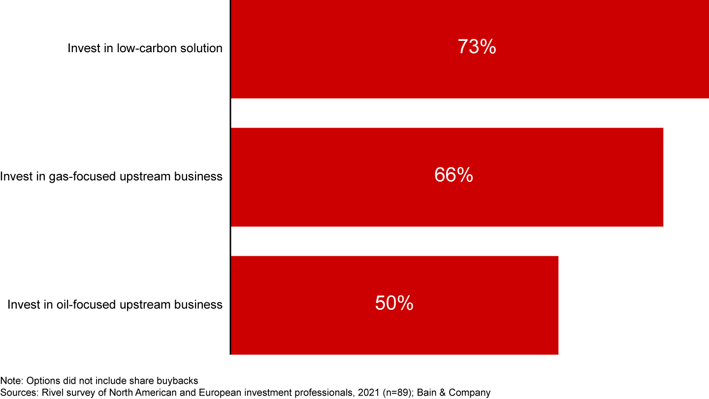 Third, investors are open to oil and gas companies participating in lower-carbon markets (see Figure 5). In the context of uncertainty about the pace and shape of the energy transition, there’s value in showing investors the company has plans for growth in a lower-carbon world.