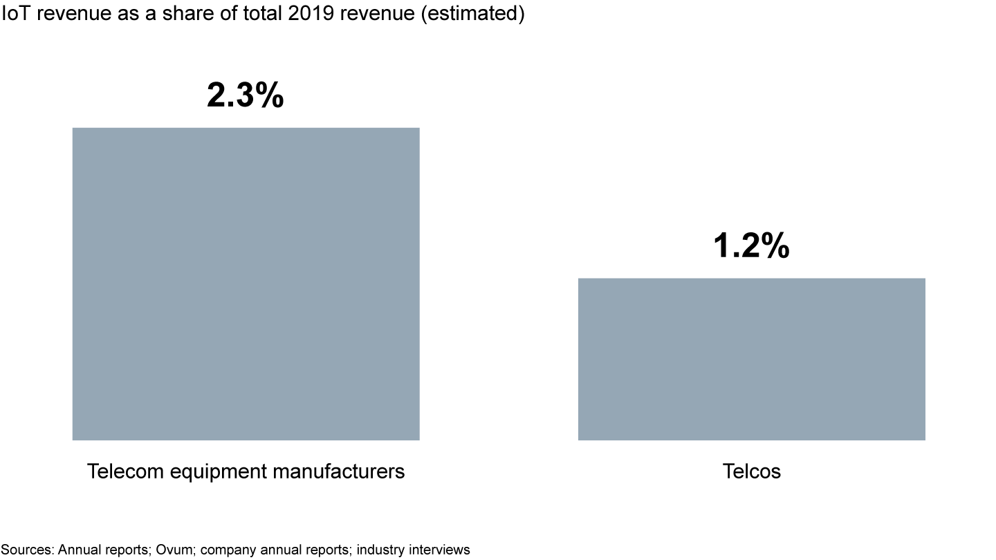 Top equipment vendors earn only 2% to 3% of their revenue from the Internet of Things, and telcos get less than 2%