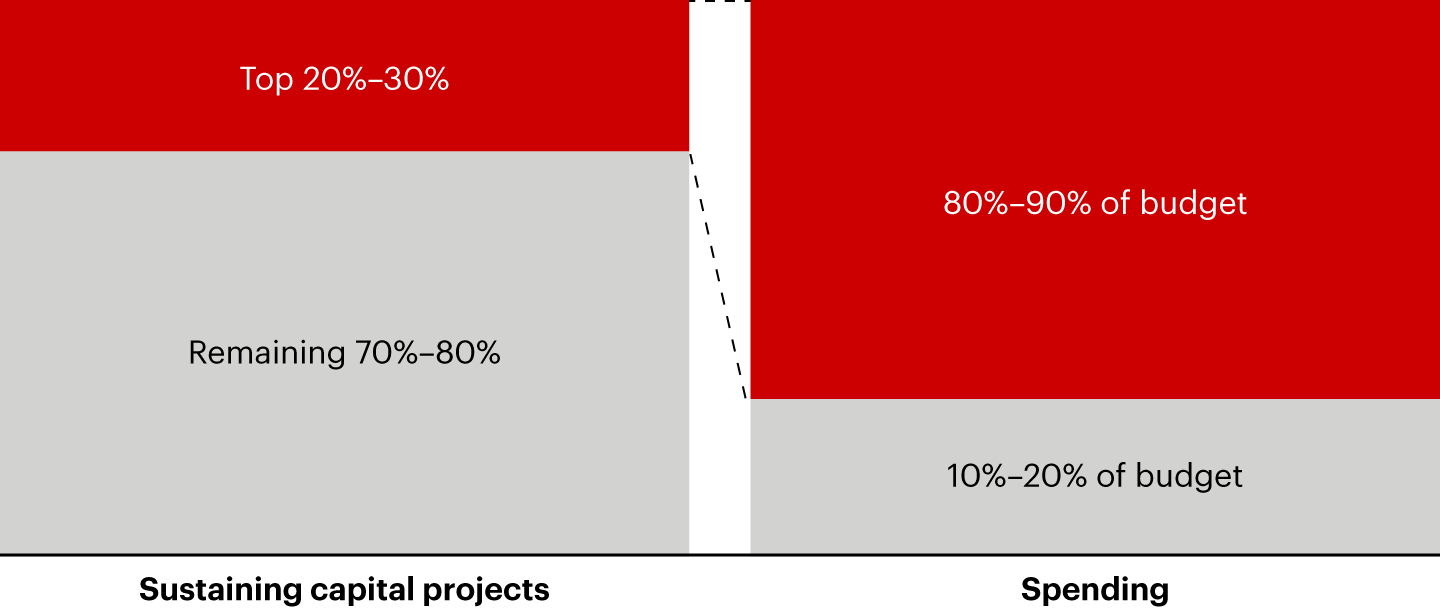 - Leading companies focus on the 20% to 30% of projects that drive 80% of sustaining capital spending.