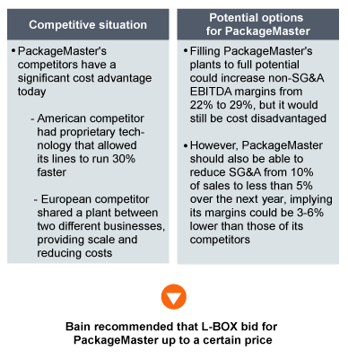 Bain focused on four key areas to quickly determine the economic value to L-Box of purchasing PackageMaster.
