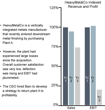 Bain's strategy to restore HeavyMetalCo to the black: focus resources on new markets and cut losses in a losing product line.