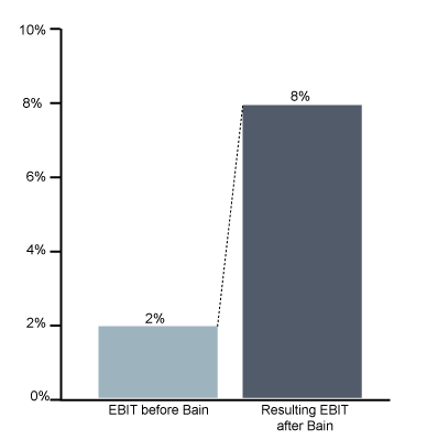 HeavyMetalCo adopted Bain's recommendations and implemented a phased shift into new markets. As a result, profits rose substantially.