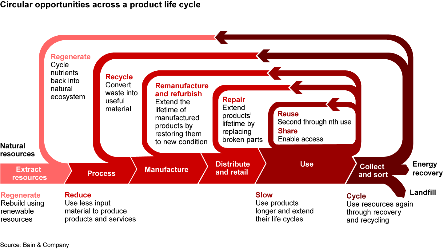 - Bain research shows that supply chain executives plan to double the share of revenue from circular products and services by 2030.
