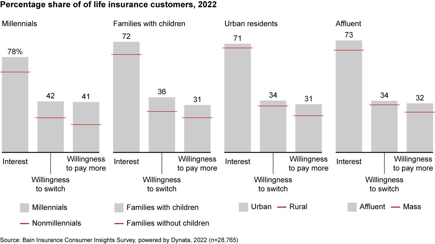 - Insurance customers want to reduce risks in their lives and are willing to use risk-prevention services from insurers. This preference is most pronounced among millennials, affluent customers, urban customers, and families with children.