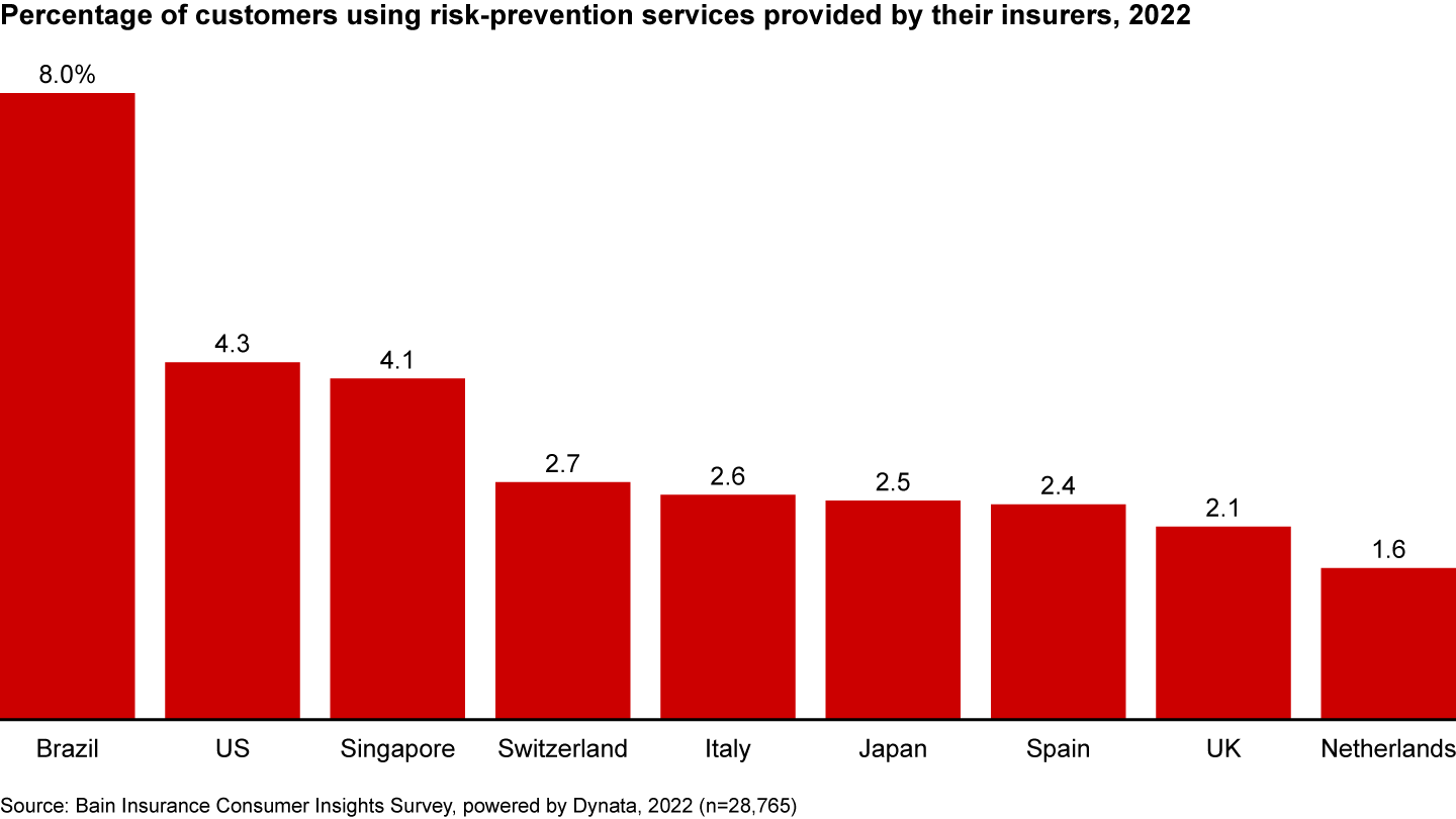 - Unfortunately, insurers aren’t yet seizing the opportunity to redefine the role they play for customers, as very few consumers globally use risk-prevention services or share connected-device data with their insurers. Most insurers haven’t even positioned themselves to seize the opportunity.