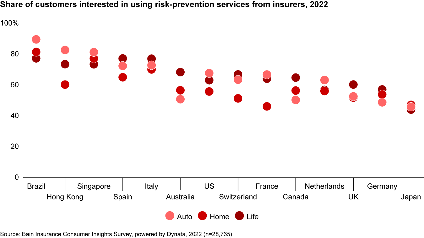 - Infrastructure for risk-prevention services has improved in recent years, as customers own more connected devices and are open to sharing data with insurers.