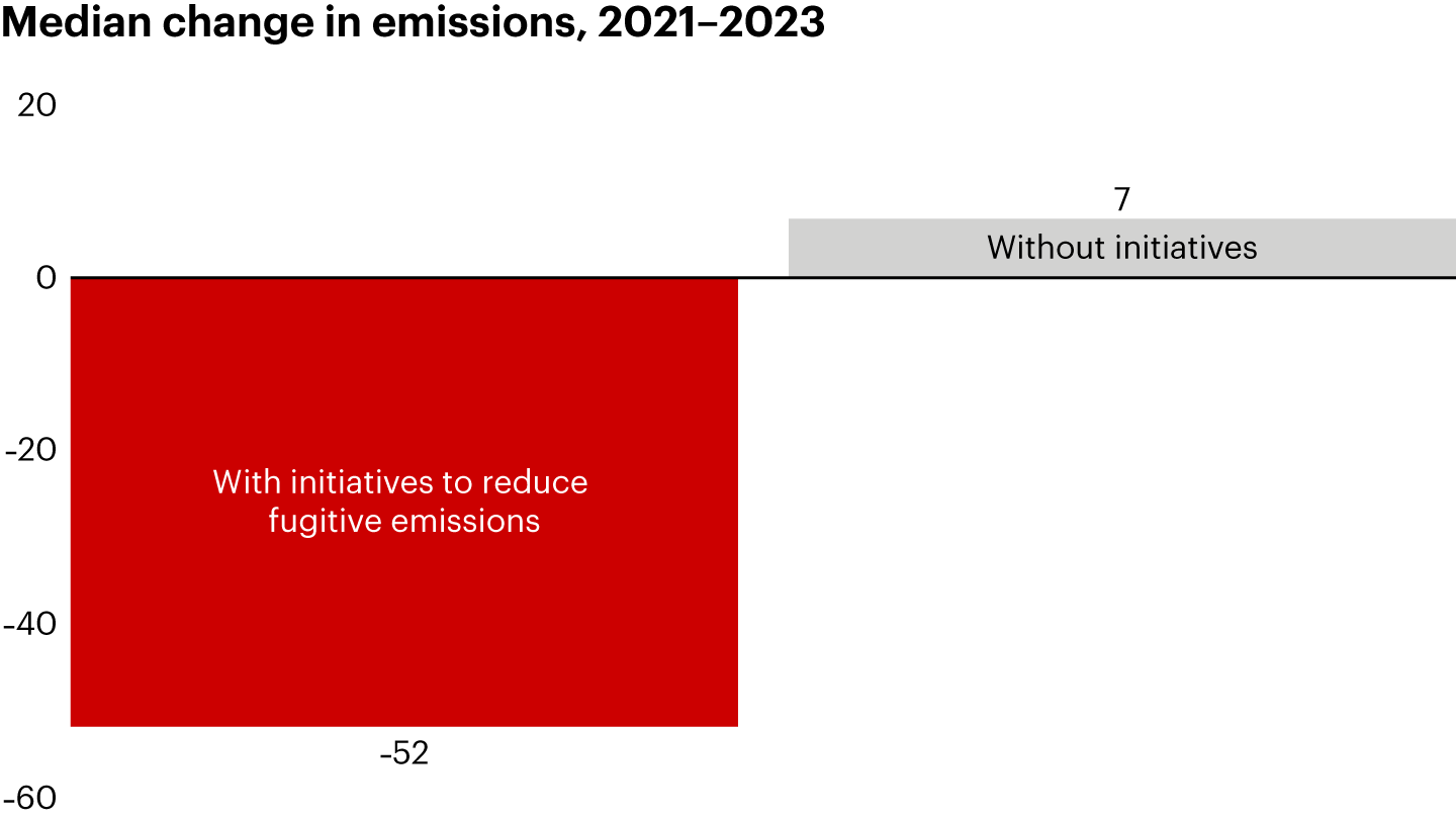 Companies with dedicated initiatives—such as natural gas methane leak capture or refrigerant leakage reduction—cut more emissions