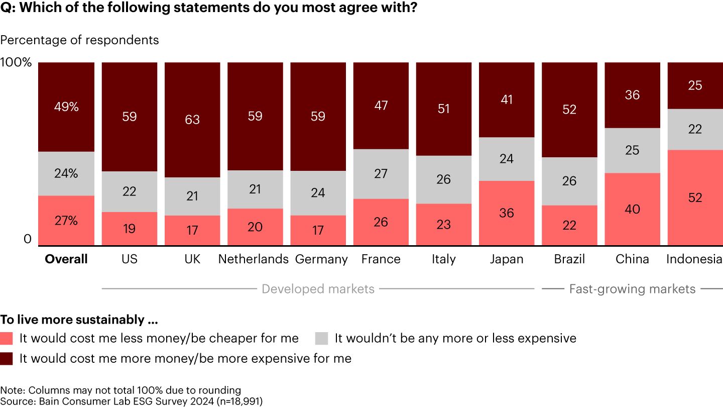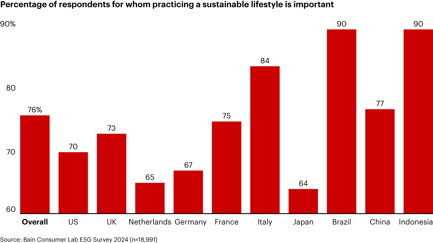 The last year has given consumers much to worry about. From wars to heightened political tensions to lingering inflation, new reasons for unease have gained mindshare around the world. But these worries have barely dislodged a major issue in consumers’ consciousness: Concerns about sustainability remain high and are competing with cost of living, political, and household finance worries. This comes at a time when many global CEOs are turning their attention to pressing matters such as disruptive AI technology, the need for growth, and geopolitical uncertainty.