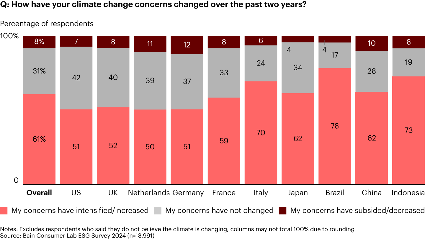 - In our global study, roughly 60% of consumers say their concerns about climate change have increased in the past two years.