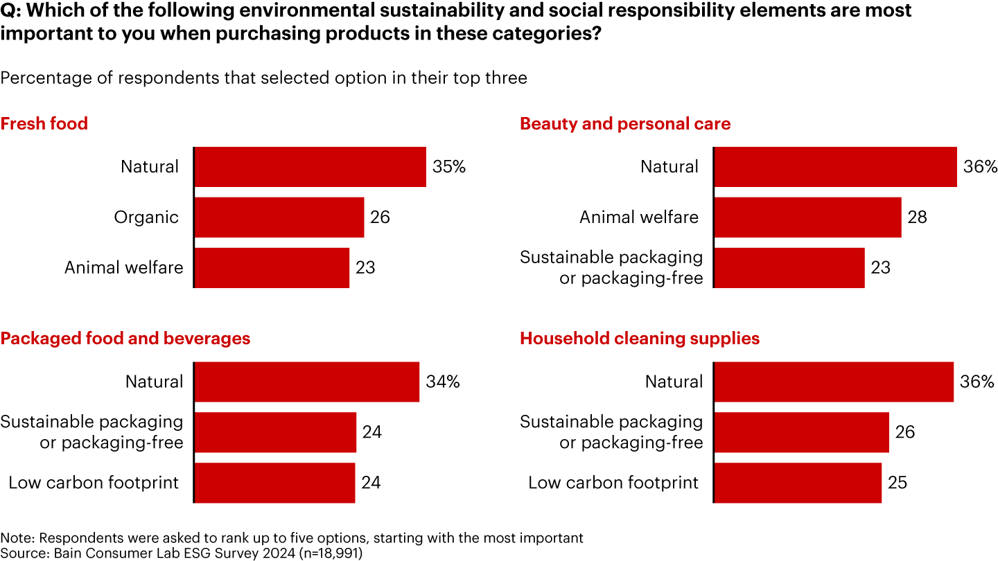 Just as these beliefs vary by geography, approaches to sustainable lifestyles diverge based on factors ranging from cultural norms to political leanings. Our research also helped us identify how people value different sustainability attributes across product categories (see Figure 5).