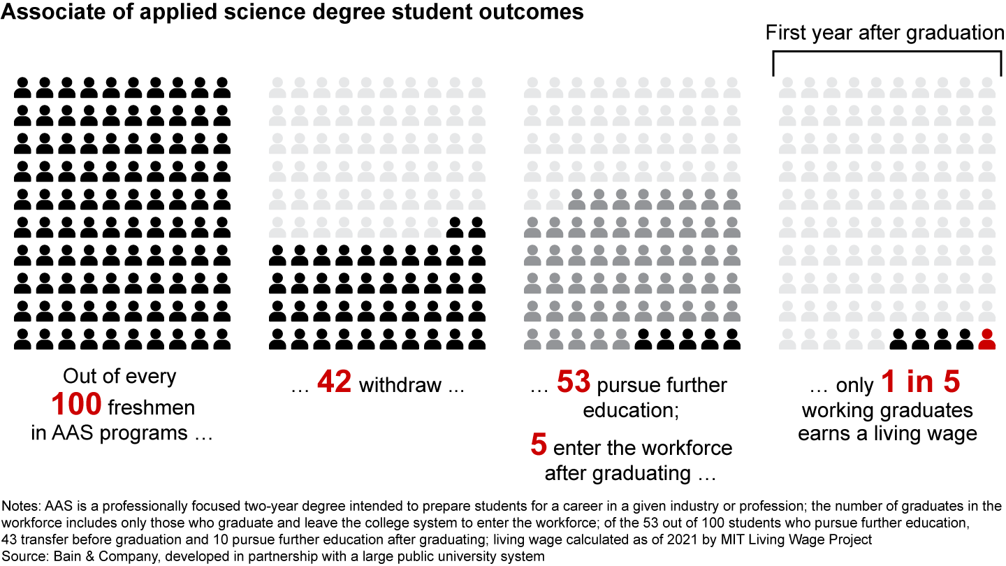 First, most postsecondary programs aren’t focused on the right jobs and, even when they are, aren’t teaching the skills required to succeed in good jobs.