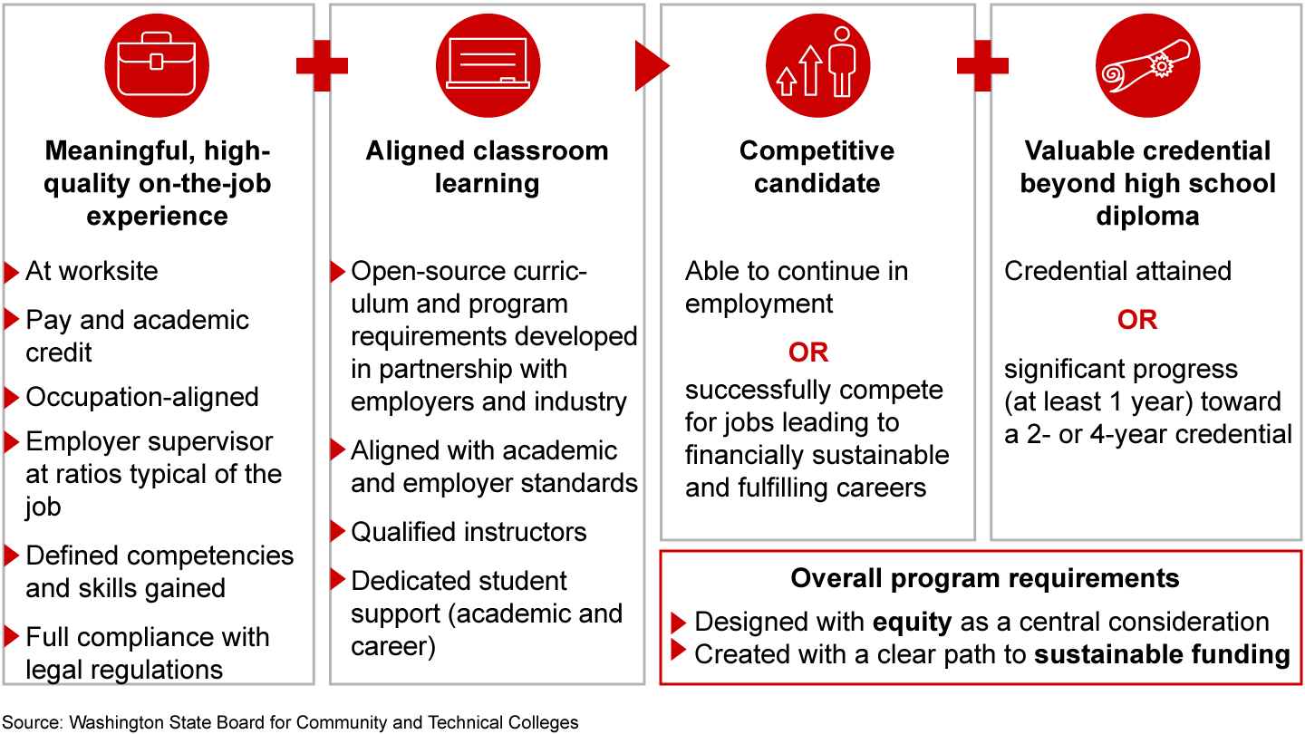 In Washington, the system was kick-started by $35 million from the state government to create regional networks, scale high-impact programs, and support educators. Then, the Career Launch endorsement process helped keep the flywheel humming. Programs that pass the Career Launch review receive valuable benefits, including grant funding and an official seal of approval.