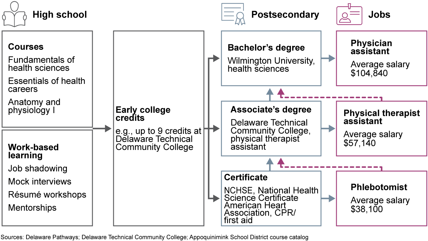 The solution was to build a statewide career-connected learning system. Under former Governor Jack Markell, the state launched The Delaware Promise—a pledge that by 2025, 65% of the state’s students would have a college degree or a professional certificate valued by employers. The state’s employers, secondary and postsecondary educators, a variety of intermediaries, and state policymakers came together to create high-quality career pathways.