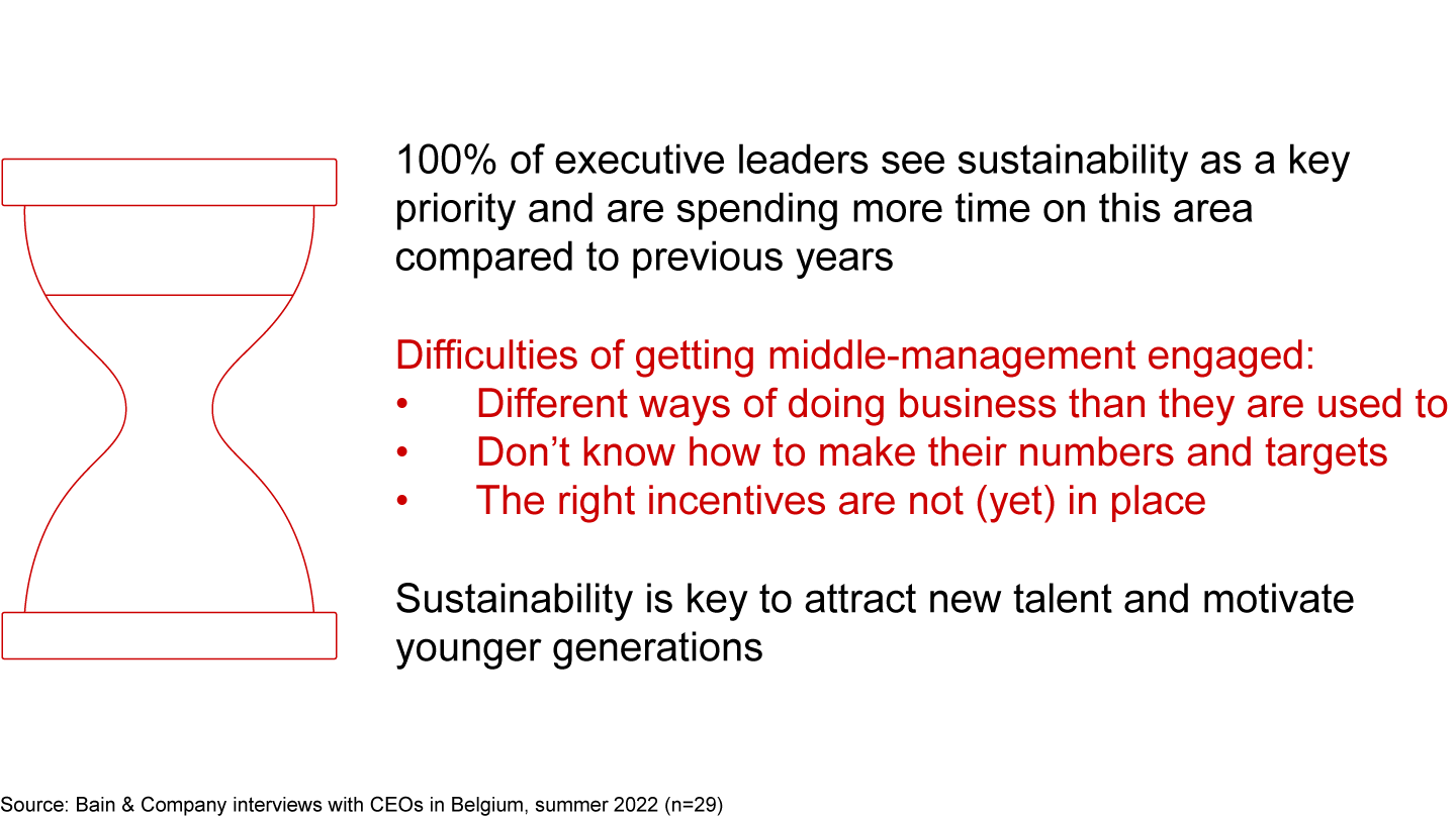 Middle-management priorities can mean they are not as engaged on sustainability as executives and new talent