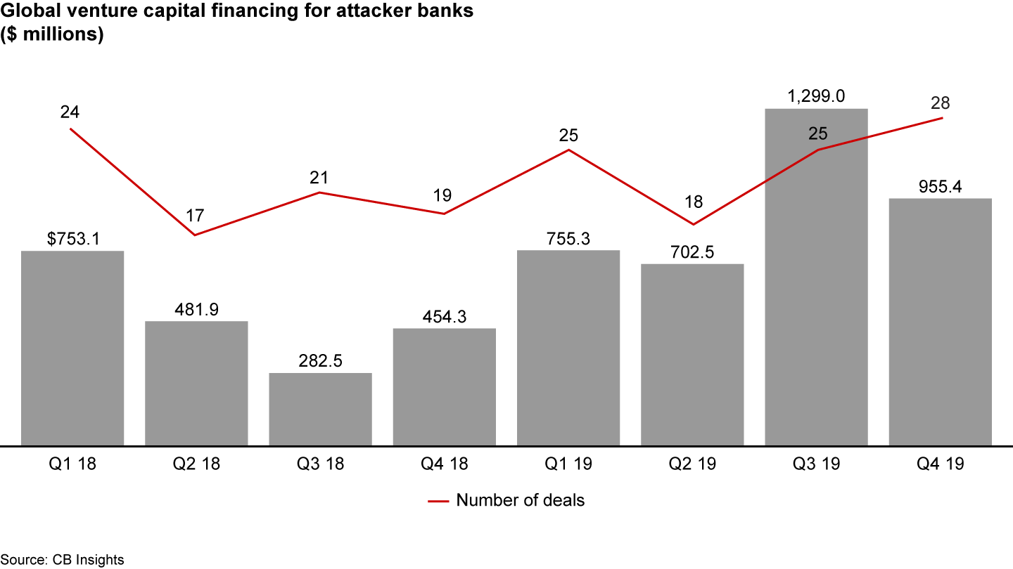 - Attackers’ cloud-native, cutting-edge technology platforms allow them to have much lower operating costs than most traditional incumbent banks.