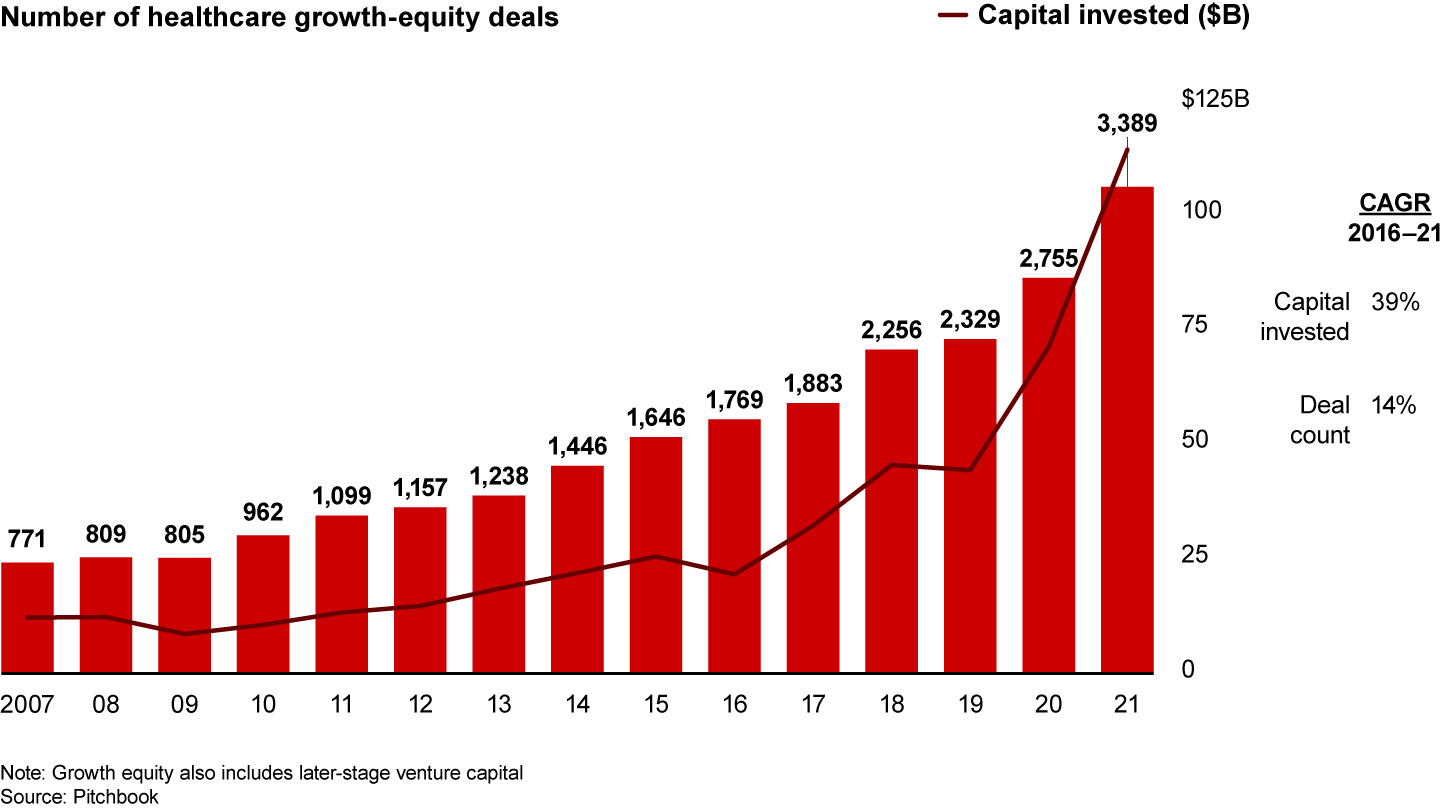 Capital deployed through healthcare growth-equity investments has grown quickly in the past five years