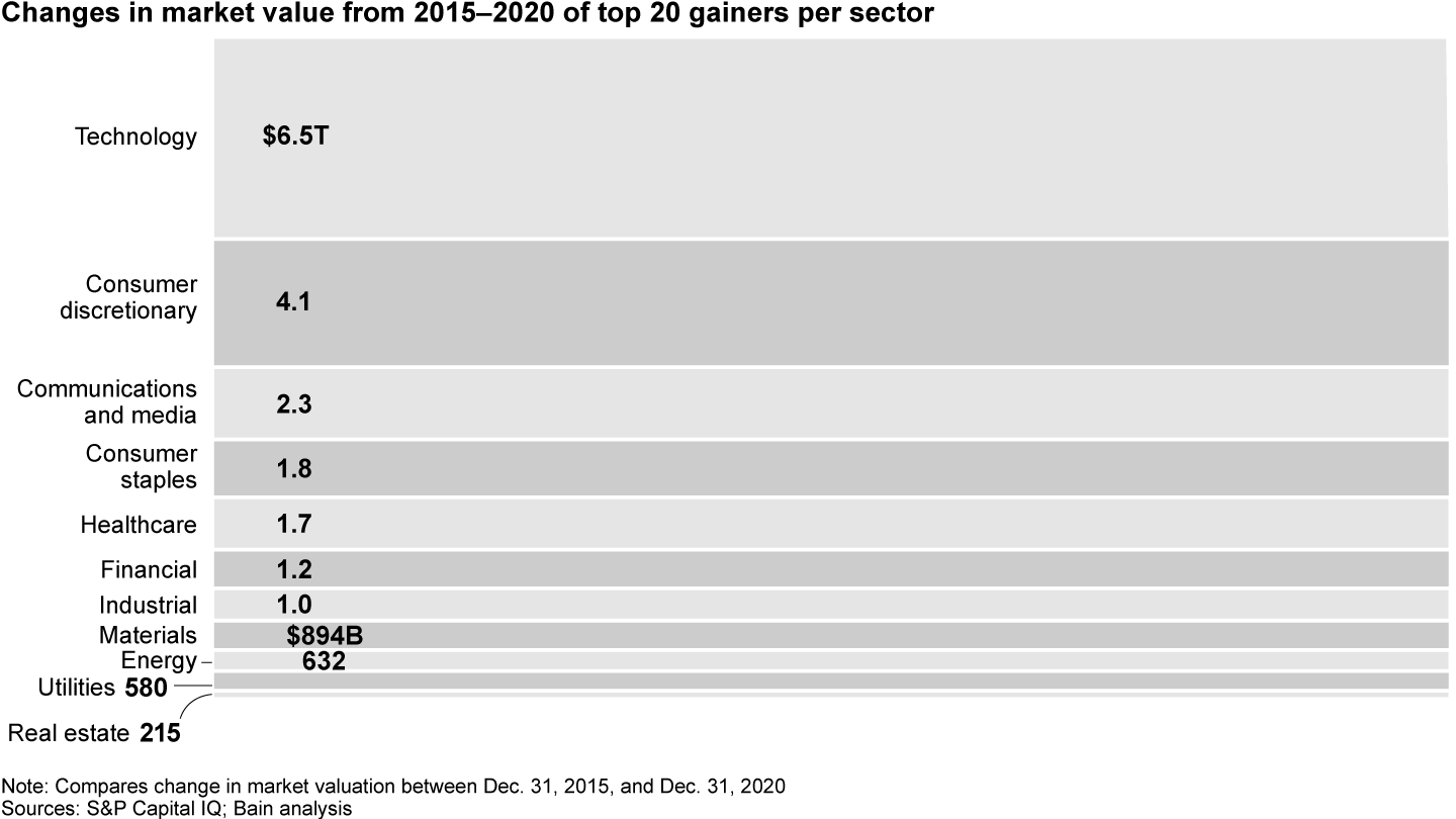 In general, companies and sectors with less tech-enabled innovation had smaller market-value gains from 2015 through 2020.