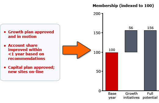 - Healthcare Payer Co faced declining membership and market share in a local, scale-based business