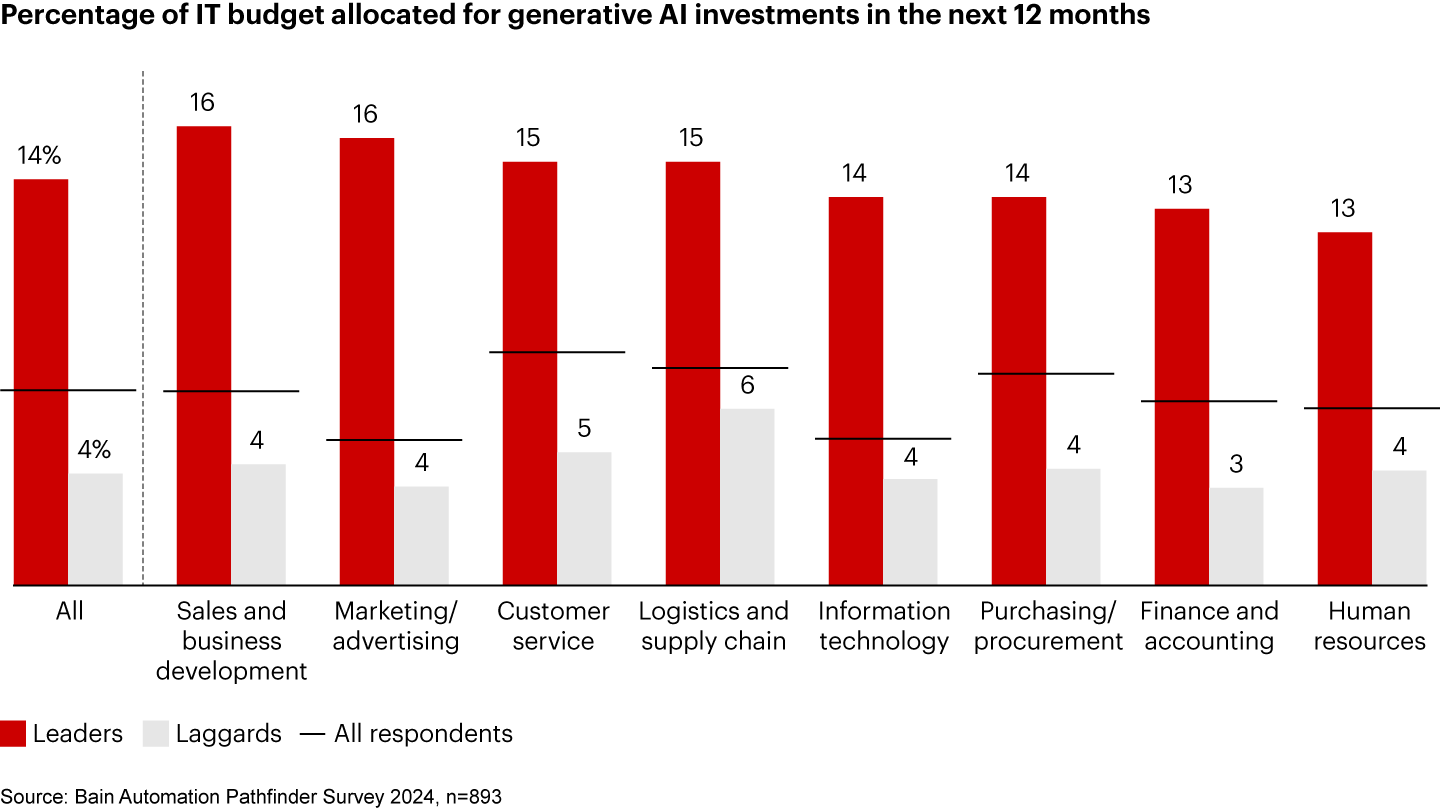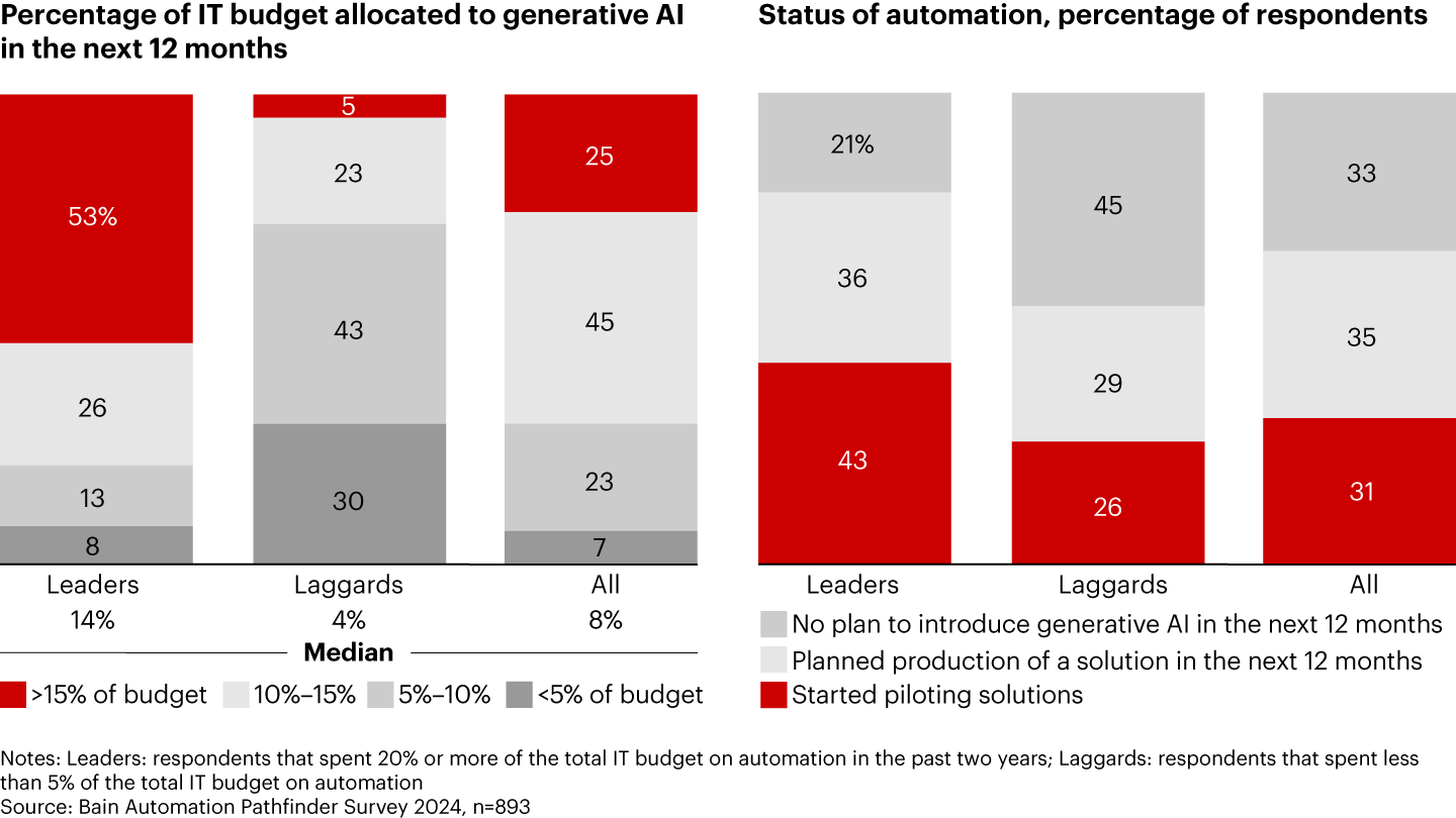 Automation leaders are out-investing others in generative AI and moving faster to implement the technology