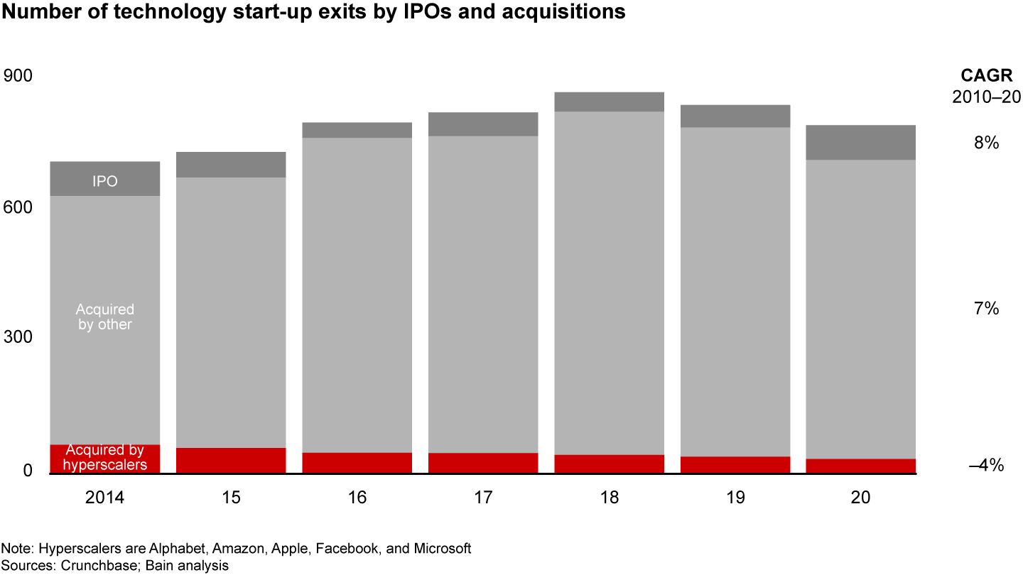 Acquisitions by US hyperscalers represent a modest portion of total tech start-up exits