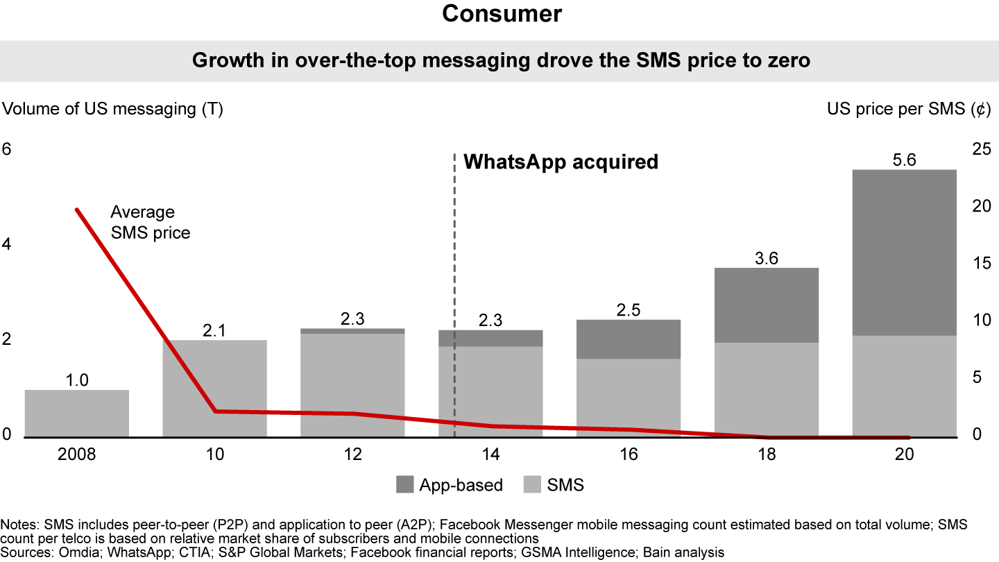 The competition between telcos and app-based messaging companies, including Facebook, Apple’s iMessage, and WeChat, has only grown fiercer since Facebook bought WhatsApp in 2014. Since the deal, the number of credible competitors has gone up, as app-based messaging companies’ share of US messaging volume grew to more than half of all messages sent last year. A judge’s dismissal of the US Federal Trade Commission’s lawsuit against Facebook in June signaled that tech companies continue to compete in broadly defined markets, though the FTC later filed an amended lawsuit to renew its case against Facebook.