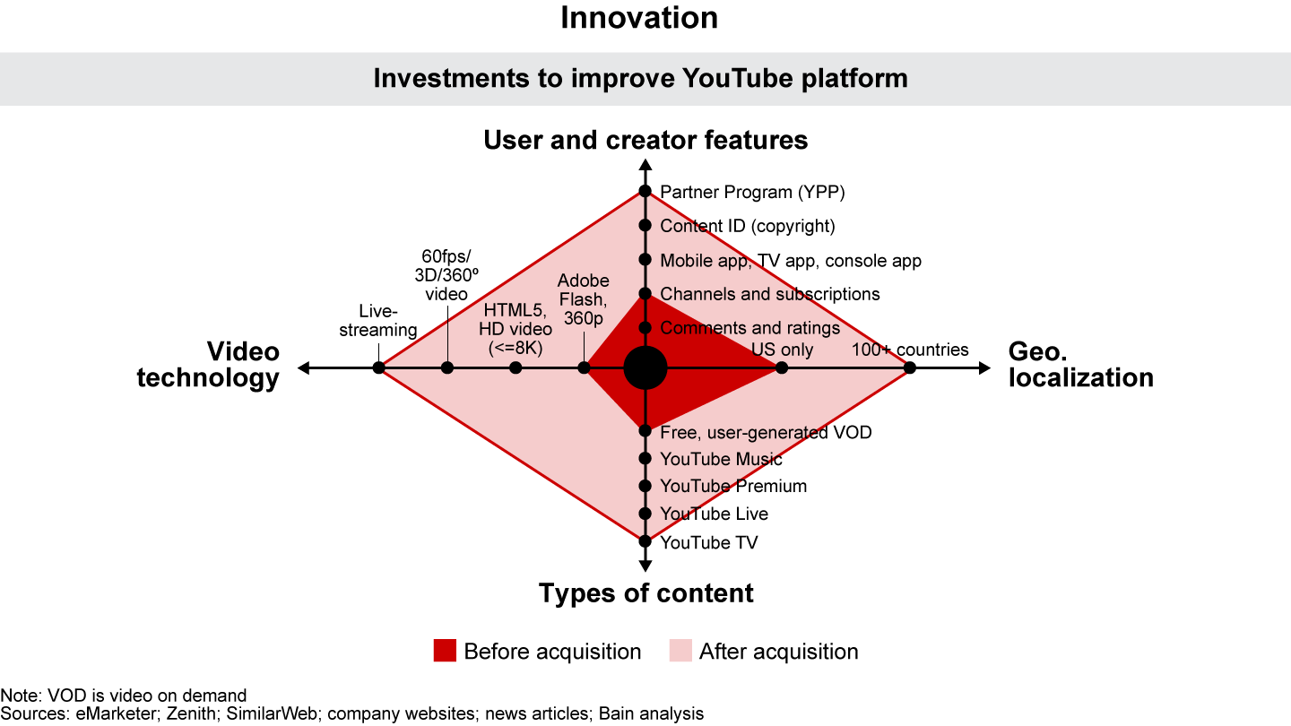 There are many examples of this. Amazon expanded Ring beyond connected doorbells and helped live-streaming service Twitch add new genres and partnerships. Google integrated Waze’s GPS navigation capabilities with music-streaming services and voice assistants. Facebook expanded virtual reality (VR) company Oculus’s offerings to include wireless VR. Microsoft improved the functionality of GitHub’s software development platform by adding features such as Codespaces, improving the site for developers.