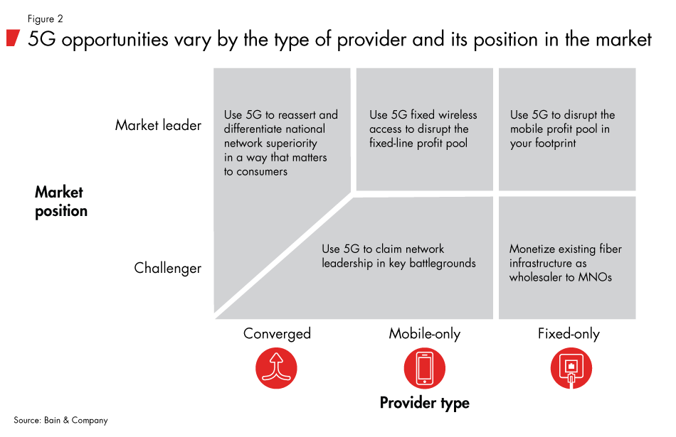 In short, 5G has the potential to scramble the competitive game board for all three classes of operators—mobile-only, fixed-only and converged. Operators that opt to wait and see how the technology will evolve risk exposing themselves to disruption from competitors that are more aggressive.
